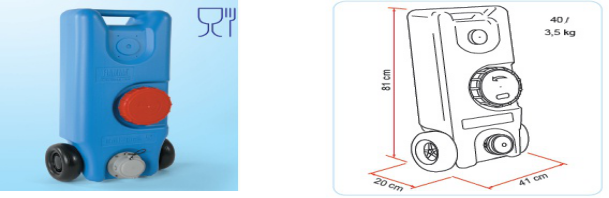 20338 三角盆 415 x 350mm | 20340 组和折叠脸盆 折叠尺寸760 x 500 x 130mm | 20360 70L水箱,预留加水、出水位置 700x470x240mm,含安装套件 |