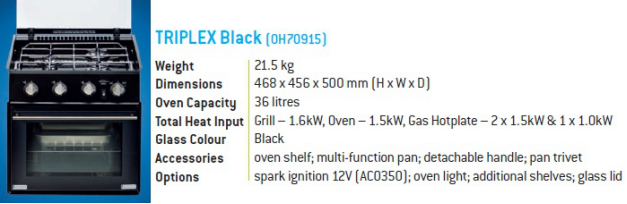 50171L 左燃气灶 (30mbar) 50171R 右燃气灶(30mbar) 12VDC打火 H160 x W980 x D410mm | 50172 燃气灶 (30mbar) 12VDC打火 H101 x W660 x D410mm |