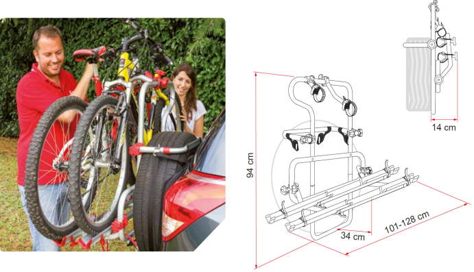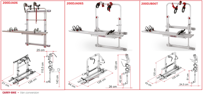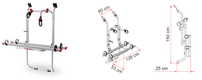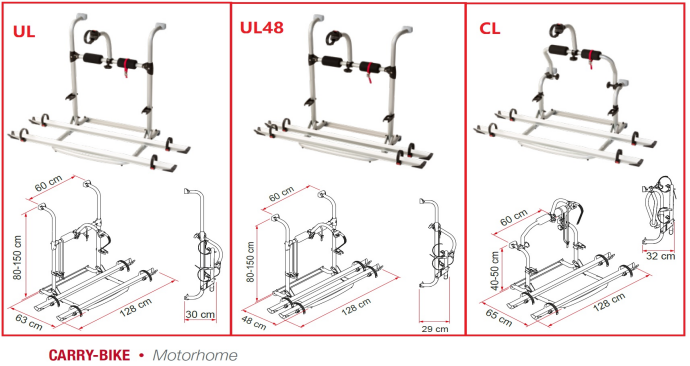 70580 CL通用自行车架(2辆),最多可以载3辆自行车(另购固定臂和轨道),最高承载55kg。 70581 UL48自行车架(2辆),最多载2辆自行车,最高承载35kg 70582 UL自行车架(2辆),最多承载2辆自行车(另配固定臂和轨道),最高承载55kg |