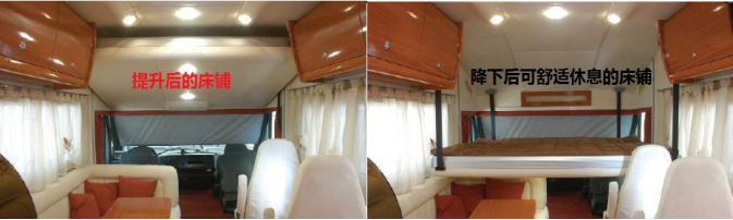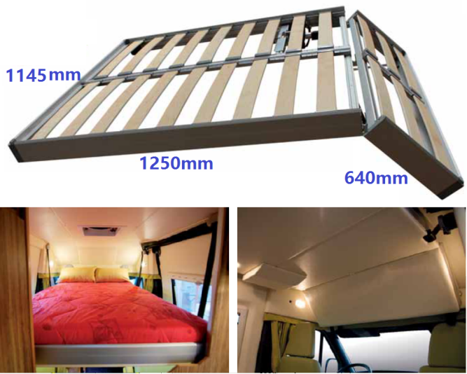 70821 可弯折升降床总成(12VDC),升降床在提升过程中,随车顶的坡度自动贴合,让出顶部空间。该升降床总成可以定制。 |