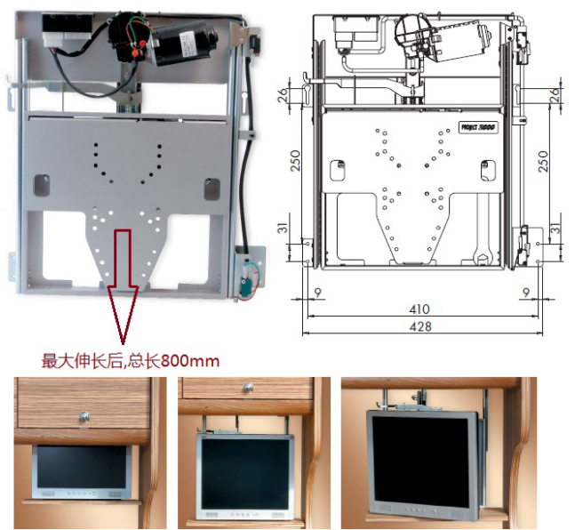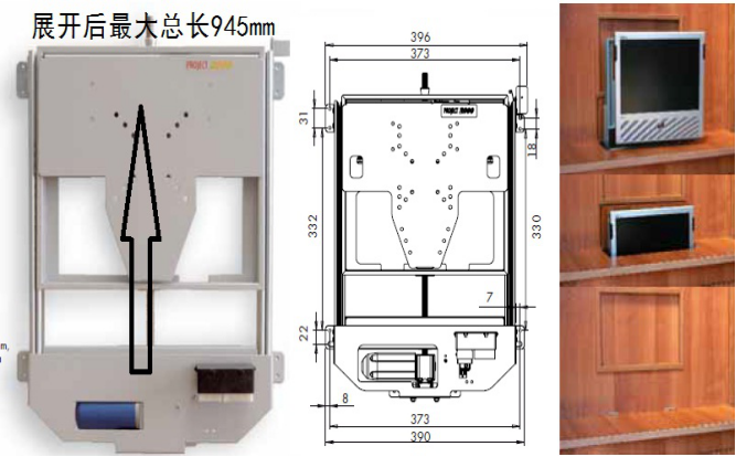 70840 顶柜暗藏下行可调角度电视支架(12VDC,36W,可左右转角23゜,可选遥控操作) |