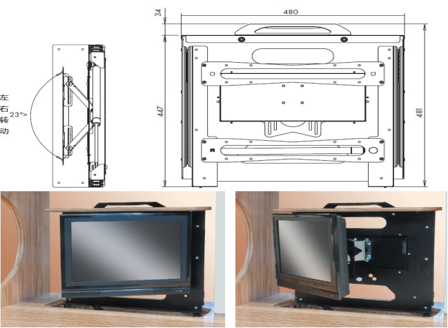 70880 底柜暗藏上行左右转动电视支架(12VDC,36W,左右转角23゜,可选遥控操作) |
