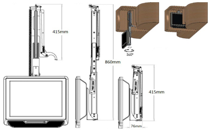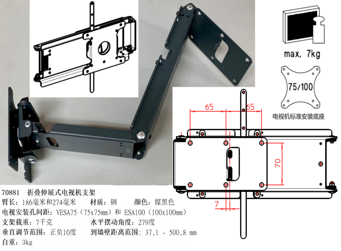 70860 底柜暗藏上行可转角度电视支架(手动),完全展开后,机构总长921mm |